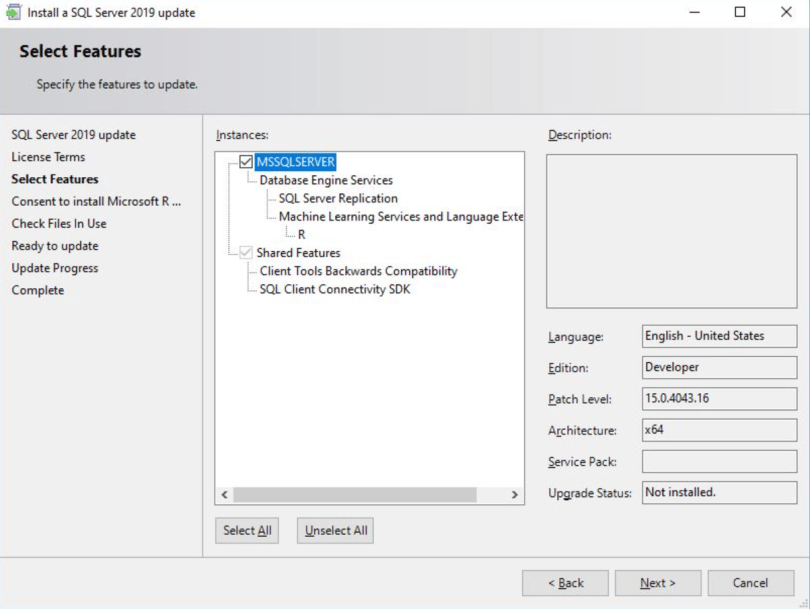 Keep in mind that service packs will no longer be available with SQL Server 2017 and greater. Instead, only cumulative updates and critical updates will be released. These cumulative updates will be frequent at first and then become less frequent as the lifecycle progresses.