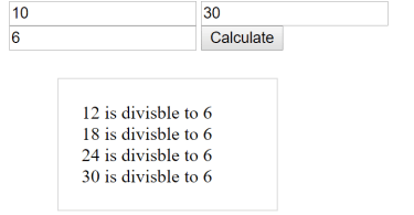 In this JavaScript code finds count of the numbers divisible by ‘m’ in a given range <!-- count...